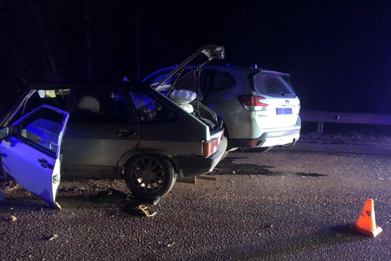 На трассе М-5 «девятку» отбросило под кроссовер после столкновения с отбойникомОдин человек погиб, трое получили травмы